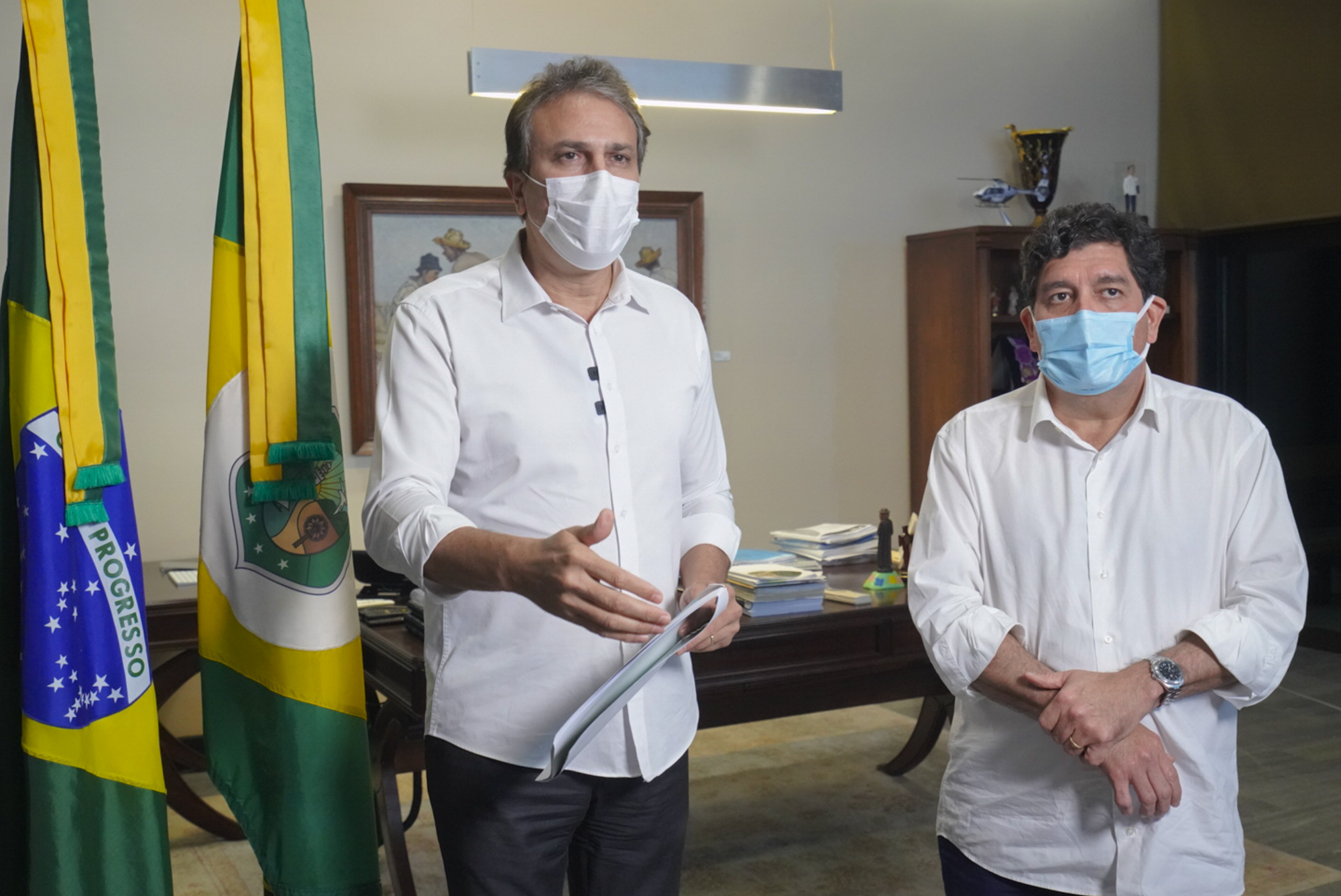 Através de transmissão ao vivo nas redes sociais, o governador Camilo Santana anunciou que o Comitê que delibera sobre os decretos estaduais no Ceará decidiu pela renovação do decreto atual por mais uma semana, com a continuidade do isolamento social rígido em todo o Estado, com a abertura apenas dos serviços essenciais até o próximo dia 28/3. Ao seu lado estava o secretário de Saúde do Estado, Dr. Cabeto.