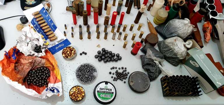 imóvel, os agentes localizaram o armamento (uma espingarda artesanal calibre 12 e um revólver calibre 32), cerca de 80 munições de calibres 12, 22, 28, 32 e 36, além de facas, facões de combate e lâminas veladas. No momento da abordagem, o homem se apresentou como investigador. Três distintivos falsos também foram apreendidos.