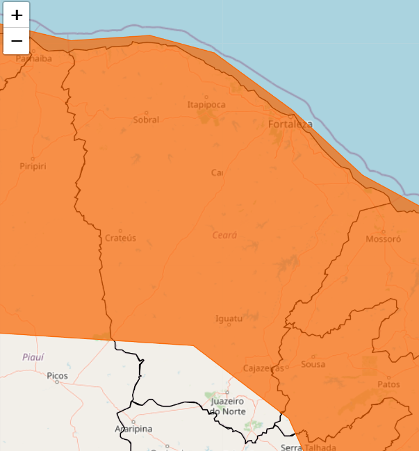 O Instituto Nacional de Meteorologia (INMET) emitiu um alerta de perigo para chuvas intensas em mais de 160 municípios do Ceará, incluindo Pedra Branca e todos os municípios do Sertão Central. O aviso é do tipo laranja, indicando condições meteorológicas adversas com potencial de causar transtornos à população.